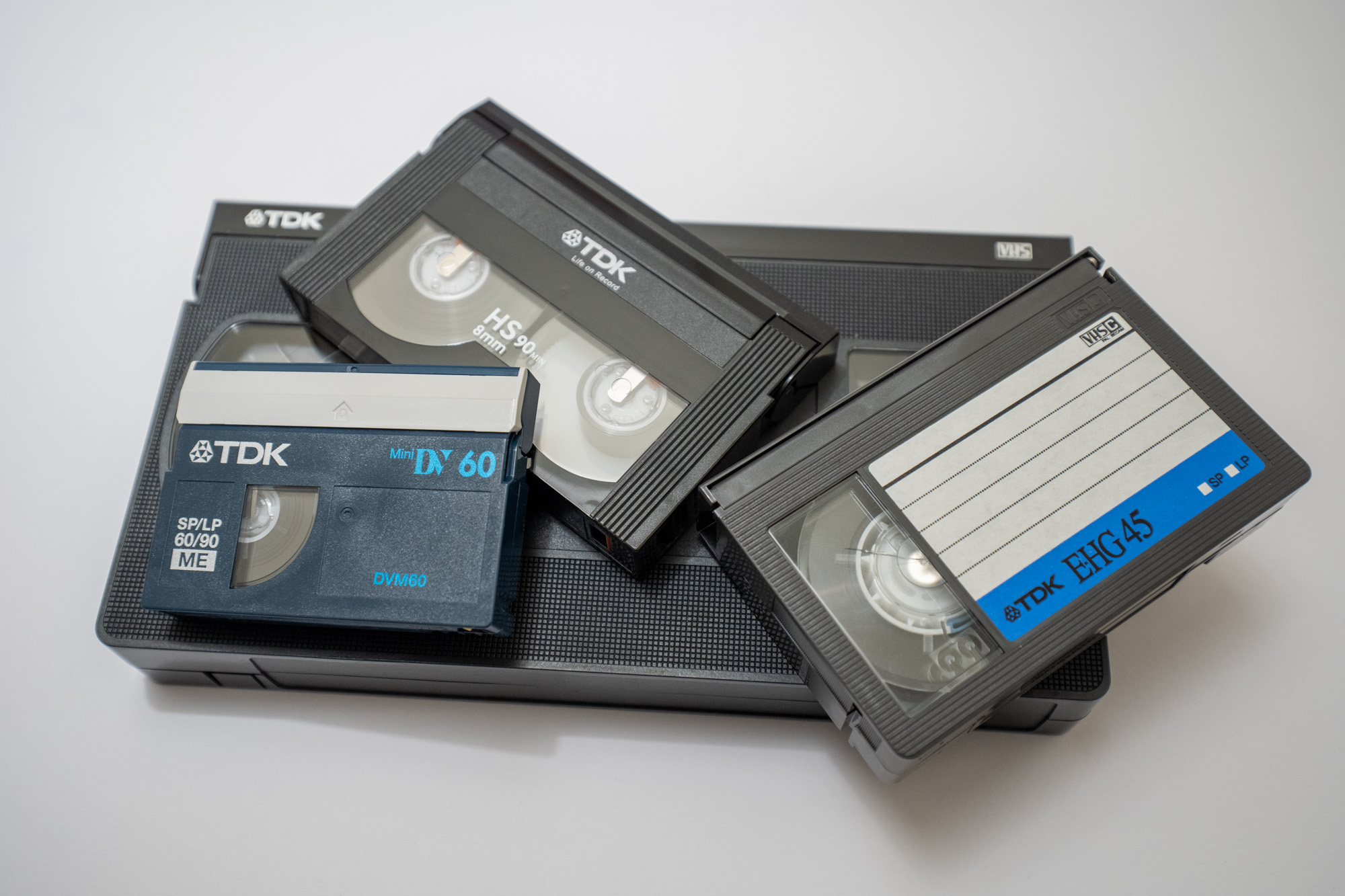 📹 Video tapes – The large VHS and all the small camcorder/video camera tapes (VHS-C, MiniDV, Hi8, Video8). Also obscure formats such as U-Matic, Betamax, 1/2inch B&W Professional formats such as Betacam & DVCAM.